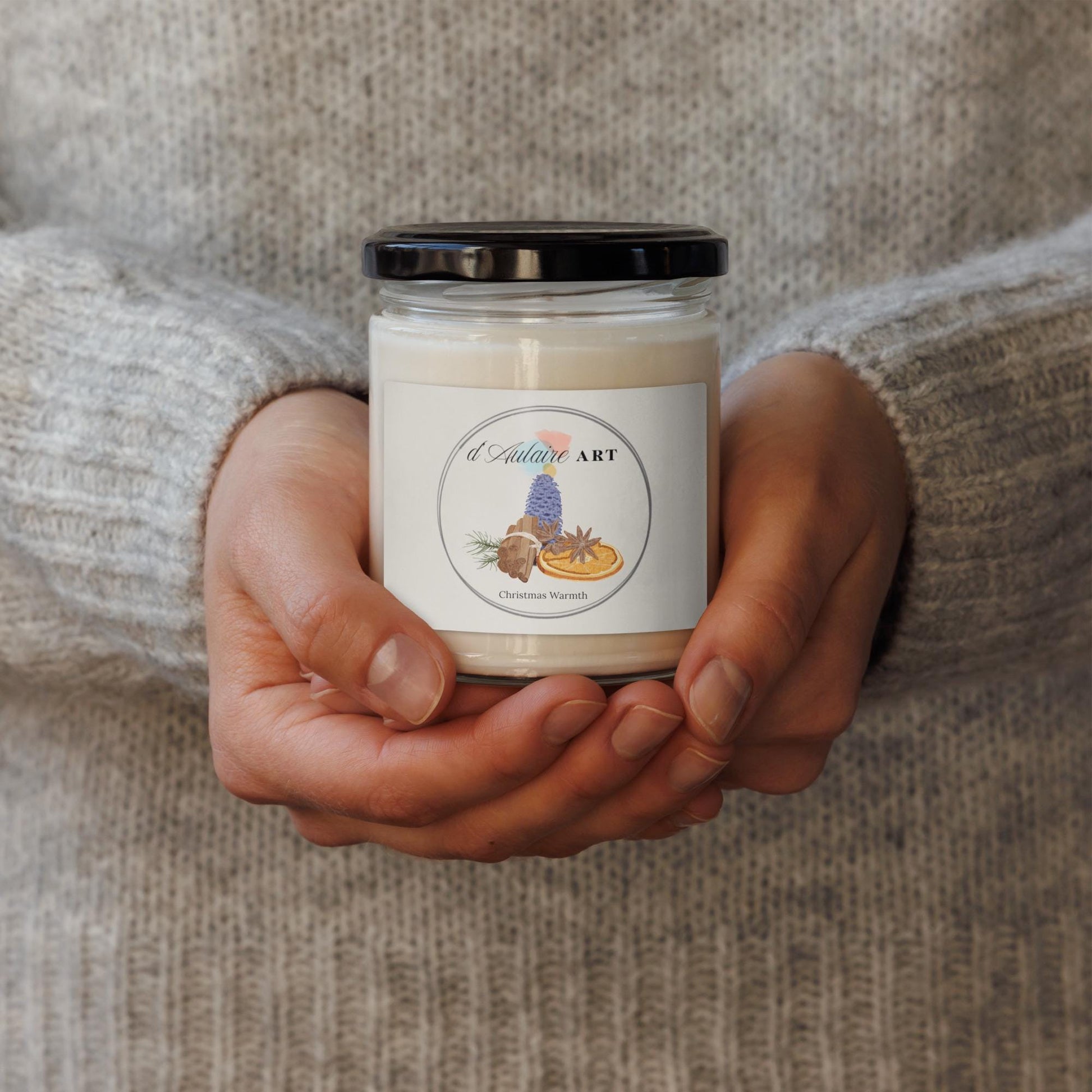 Christmas Warmth Scented Soy Candle Watercolor Painting by d'Aulaire Art